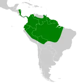 The white-flanked antwren ranges from Honduras to central South America. The subspecies are found thus:[9][10][11][12][13][14][15][7]