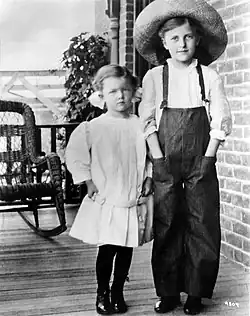 Loy was born Myrna Adele Williams on August 2, 1905, in Helena, Montana,[4][5] the daughter of Adelle Mae (née Johnson) and rancher David Franklin Williams.[6] Her parents had married in Helena in 1904, one year before Loy was born.[7] She had one younger brother, David Frederick Williams (1911–1983).[8] Loy's paternal grandfather, David Thomas Williams, was Welsh, and emigrated from Liverpool, England to the United States in 1856, arriving in Philadelphia.[9] Unable to read or write in English, he later settled in the Montana Territory where he began a career as a rancher.[10] Loy's maternal grandparents were Scottish and Swedish immigrants.[11][12] During her childhood, her father worked as a banker, real estate developer, and farmland appraiser in Helena, and was the youngest man ever elected to serve in the Montana state legislature.[13] Her mother had studied music at the American Conservatory of Music in Chicago, and at one time considered a career as a concert performer, but instead devoted her time to raising Loy and her brother.[14] Loy's mother was a lifelong Democrat, while her father was a staunch Republican.[14] She was raised in the Methodist faith.[15]