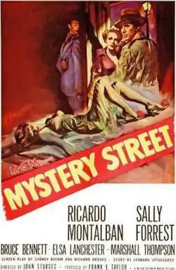 Mystery Street is a 1950 American black-and-white film noir featuring Ricardo Montalbán, Sally Forrest, Bruce Bennett, Elsa Lanchester, and Marshall Thompson.[3] Produced by MGM, it was directed by John Sturges with cinematography by John Alton.