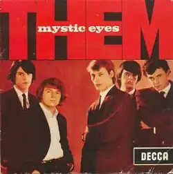 "Mystic Eyes" is a song written by Northern Irish singer-songwriter Van Morrison when he was leader of the band Them. It was the opening tune for the band's first album, The Angry Young Them that was released in June 1965. It was released as a single in the US in October 1965 and in the UK on 12 November 1965. It charted at No. 33 in the US but did not chart in the UK.