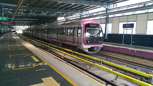 ![]() Namma Metro train at Mysuru Road metro station heading towards Kengeri | ||||||||||||||||