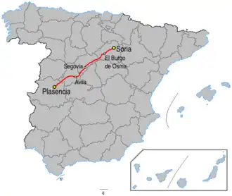 The road continues north east to the Autovía A-1 junction north of Puerto Somosierra (1,440 m). The road heads through the Sierra de Pela before ending in the Duero Valley with a junction with the N-122