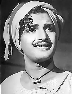 N. T. Rama Rao (1923–1996), commonly known by his initials NTR, was an Indian actor, screenwriter, director and producer who worked primarily in Telugu cinema. Through his over four-decade long career of almost 300 films, he was considered one of the most pivotal figures of the Telugu industry.[1][2] After his debut in Mana Desam (1949) and his first lead role in Palletoori Pilla (1950), Rama Rao's performance in the fantasy film Pathala Bhairavi (1951) made him famous.[3][4][5] His other films with Vijaya Vauhini Studios, Malliswari (1951) and Pelli Chesi Choodu (1952), were also successful, causing him to become the industry's "top star" according to Ashish Rajadhyaksha and Paul Willemen in the book Encyclopedia of Indian Cinema.[6] He also took his first steps into film production by forming the National Art Theatre production studio in 1953.[7]