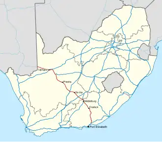 1. ^ a b c d e f Falkner, John (May 2012). South African Numbered Route Description and Destination Analysis (Report). National Department of Transport. p. 24. Archived from the original on 6 June 2014. Retrieved 12 August 2014.