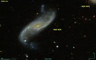 NGC 4615 is a spiral galaxy in the constellation of Coma Berenices. Its velocity with respect to the cosmic microwave background is 5,022±20 km/s, which corresponds to a Hubble distance of 241.6 ± 16.9 Mly (74.07 ± 5.19 Mpc).[1] However, one non-redshift measurement gives a much closer distance of 213 Mly (65.4 Mpc).[2] It was discovered by German astronomer Heinrich d'Arrest on 9 May 1864.[3]