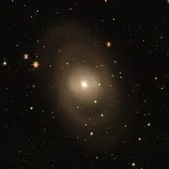 NGC 4984 is an intermediate lenticular galaxy exhibiting a double ring structure in the constellation Virgo. It is a member of the NGC 4856 Group of galaxies,[2][3] which is a member of the Virgo II Groups, a series of galaxies and galaxy clusters strung out from the southern edge of the Virgo cluster.[4][5] In December 2011, supernova 2011iy was discovered in it.[6]