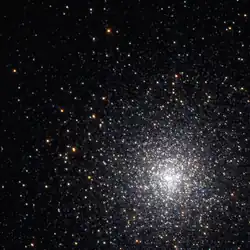 NGC 5824 is a globular cluster in the constellation Lupus, almost on its western border with Centaurus. Astronomers James Dunlop (1826), John Herschel (1831) and E.E. Barnard (1882) all claim to have independently discovered the cluster. It is condensed and may be observed with small telescopes, but larger apertures are required to resolve its stellar core.[3][4]
