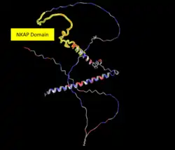 Secondary structure predictions suggest that the NKAPD1 protein consists mainly of alpha helices.[13] Predicted three-dimensional structures showed mostly coils with a few small regions of alpha helices. [11]