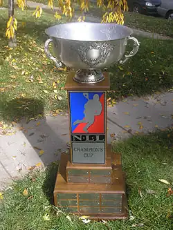The National Lacrosse League Cup (NLL Cup) is the trophy awarded each year to the champions of the National Lacrosse League (NLL). Prior to 2018, the league awarded the Champions Cup.[1] The NLL Cup was redesigned in 2024.[2][3]