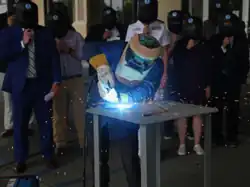 Oceanographer′s construction began with a ceremony at the Thoma-Sea Marine Constructors shipyard in Houma on 15 June 2022.[2] During the ceremony, the initials of the ship's sponsor, Linda Kwok Schatz, wife of United States Senator Brian Schatz of Hawaii, were welded onto a steel plate that was to be incorporated into the ship's structure during construction.[2] Oceanographer was launched in August 2024.[3][4]