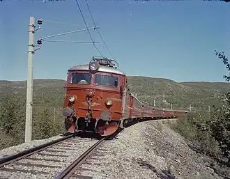 The NSB El 11 was an electric locomotive which was operated for both passenger and freight trains by NSB. It was the third type of Norwegian electric locomotive with bogies, after the NSB El 7 and NSB El 9. They were manufactured by Norsk Elektrisk & Brown Boveri (NEBB) and Thune mekaniske verksted. The first 35 engines were built between 1951 and 1956 and numbered 11 2078 to 11 2112, a second series of 6 engines, the El 11b, was built between 1963 and 1964 and numbered 11 2145 to 11 2150. The b-series had minor modifications such as a windshield consisting of two large windows instead of four small ones. A further upgrade of the El 11 became the NSB El 13 locomotive.