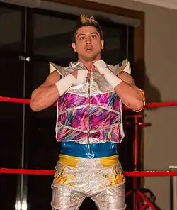 A round-robin tournament began on April 15, 2020, to determine the interim NXT Cruiserweight Champion after Jordan Devlin was deemed unable to defend the title due to COVID-19 pandemic-related travel restrictions. Eight wrestlers were split into two groups of four, where each wrestler competed against the other three members of their respective group. The wrestlers with the best record in each group then competed to determine the interim champion. Any ties were broken by head-to-head results.[42] Group A consisted of Kushida, Tony Nese, Jake Atlas, and former 205 Live General Manager Drake Maverick, while Group B consisted of Isaiah "Swerve" Scott, El Hijo del Fantasma, Akira Tozawa, and Gentleman Jack Gallagher.[43] Although Maverick was released from WWE on April 15,[44] he confirmed via Twitter that he would still be competing in the tournament; at the time, he had stated they would be his last matches in the company.[45] As a result of a tie in Group A, Maverick, Kushida, and Atlas faced each other in a triple threat match on the May 27 episode of NXT to determine the winner of the group; Maverick won to advance to the final against Group B's winner, Fantasma.[46] The final occurred during the May 27 tapings of NXT (aired June 3) where Fantasma defeated Maverick to become the interim champion; following the match, Triple H offered Maverick a new NXT contract, which he accepted.[23] The following week, Fantasma turned heel on Maverick, unmasked himself, and changed his ring name to Santos Escobar.[47]