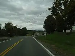 After leaving Paines Hollow, NY 167 continues northeast into the town of Little Falls. The route remains rural through the town, intersecting with Johnny Cake and Oregon roads (CR 136 and CR 120, respectively) as it winds to the northeast. Just under 2 miles (3.2 km) from Paines Hollow, the highway briefly curves to the southeast ahead of a hairpin turn that leads northward to a junction with Newville Road (CR 45).[3]