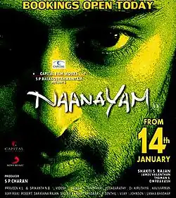 Naanayam (transl. Integrity, Currency) is a 2010 Indian Tamil-language heist thriller film written and directed by Shakti Soundar Rajan in his directorial debut. Produced by Atharsh Capital Film Works, the film stars Prasanna, Sibiraj,[2] S. P. Balasubrahmanyam, Ramya Raj,[3] and debutante Yasmin. The film's songs were composed by James Vasanthan, and the score was by Thaman. The film released on 14 January 2010 to mixed reviews. It marked the last Tamil film of Ramya Raj.