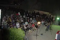 BCHR said that the only reason Rajab had been targeted was to prevent him from continuing his legitimate and peaceful human rights work.[150] The Al Wefaq political party said Rajab's sentence was further evidence of the government's unwillingness to find a solution to the crisis, noting that political detainees were prisoners of conscience and the regime had no right to use them as hostages "as part of its security solution to the ongoing political crisis".[142] Justin Gengler, a Bahrain researcher based in Qatar,[151][152] remarked that Bahrain's 'reformist' king was unfortunately beginning to sound eerily like his uncle.[153] A number of political and human rights activists held a sit-in in solidarity with Rajab at National Democratic Action Society headquarters on 18 August.[154] On 31 August, thousands of protesters filled a three-kilometer highway chanting for the release of Rajab.[155]