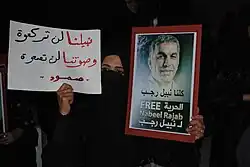 - ^ (in Arabic). Zainab al-Tajer (20 August 2012). "سياسيون وحقوقيون ونشطاء يتضامنون مع نبيل رجب". Al-Wasat. Retrieved 21 August 2012.