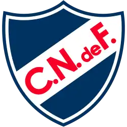 Nacional's crest features a shield with a white slash with the following "C.N de F." written on it. The crest was inspired by the Artigas flag.[24][25]