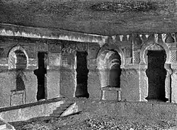 ![]() ![]() Nadsur/Thanale caves, and inside of Vihara No.7 | |