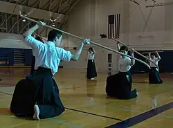 Suiō Ryū Iai Kenpō is one of the most complete styles, with several weapons in its curriculum. The naginata occupies an important highlight, having been incorporated by the founder of the style, Mima Yochizaemon Kagenobu (1577–1665), who learned to use this weapon with the sōhei monks during the musha shugyō (武者修行; warrior pilgrimage) that he made in the first part of his life.[8]