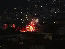 Rioters in Marseille reportedly threw fireworks at police.[55] In Nanterre, rioters vandalised the Memorial to the Martyrs of the Deportation, which remembers victims of the Holocaust in Vichy France.[56] A car reportedly crashed into a supermarket in Nantes,[57] after which it was vandalized and looted.[58] There were also reports of the Clichy-sous-Bois town hall being lit on fire by rioters.[59] There were 875 arrests nationally.[60]