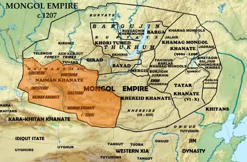 ![]() Location of the Naiman khanate at the start of the Mongol Empire | |