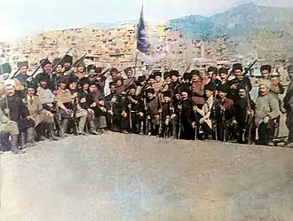 The Red Army and forces loyal to Najmuddin continued to clash until August 1918, when forces loyal to Lazar Bicherakhov left Baku after the battle for the city and took control of much of the Northern Caucasus.[40] An Ottoman offensive quickly brought an end to Bicherakhov's forces and reestablished the Mountainous Republic.[43] The reestablished republic granted Najmuddin the position of director of sharia affairs in March 1919.[13]