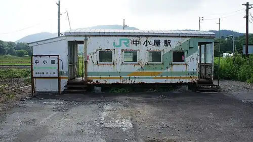 Nakagoya Station (中小屋駅, Nakagoya-eki) was a railway station on the Sasshō Line in Tōbetsu, Ishikari District, Hokkaidō, Japan, operated by Hokkaido Railway Company (JR Hokkaido).