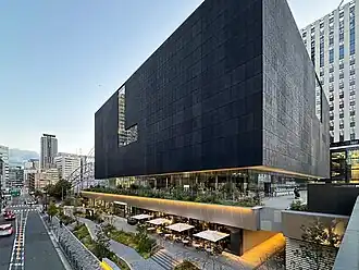 The building, designed by architect Endō Katsuhiko, is characterised by its cubic black façade and well thought-out architectural concept. A central element is a public 'passage' area that allows visitors free access and promotes the idea of making art an everyday experience. Inside, the exhibition spaces are spread over several floors and are complemented by modern facilities such as barrier-free access, a children's corner and catering facilities.