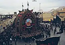 Nakhl Gardani (Persian: نخل گردانی, Persian pronunciation: [næxl ɡærdɑːniː]) or Nakhl Bardari is a Shia religious ritual carried out on the day of Ashura for commemorating the death of Husayn ibn Ali, the grandson of the Islamic prophet Moḥammad and third Shia Imam. Nakhl is a wooden structure used as a symbolic representation of the Imam's coffin and Nakhl Gardani is the act of carrying the Nakhl from one place to another, resembling an Imam's funeral.[1]