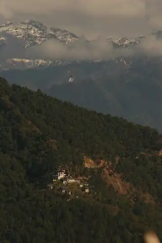 View of Nalanda Buddhist Institute from Dochu La (pass)