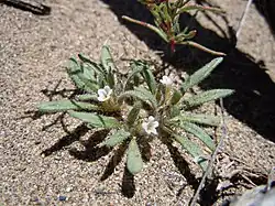 Nama densum (also, Nama densa) is a species of flowering plant in the borage family known by the common name leafy fiddleleaf, or leafy nama.