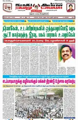 - ^ "அ.தி.மு.க.வுக்கு புதிய நாளேடு: ஜெயலலிதா பிறந்த நாளில் தொடக்கம்". maalaimalar (in Tamil). 18 January 2018. Archived from the original on 10 July 2022. Retrieved 18 January 2018.