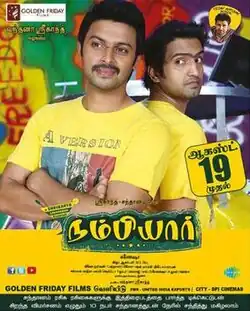 Nambiyaar is a 2016 Tamil language comedy film written and directed by Ganeshaa in his directorial debut.[1] It stars Srikanth, Santhanam (as the title character) and Sunaina in the lead roles. Produced by Srikanth's home production Golden Friday Films and independent producer, Haresh Vikram Vijayakumar (Malaysia), the film is named after the veteran actor M. N. Nambiar, who was famous for his villainous roles in yesteryear Tamil cinema.