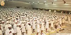 Satguru Jagjit Singh provided a new dimension to marriages amongst Namdhari Sikhs. He completely banned dowry, and in the events organized by Namdhari Vidyak Jathas, many youngsters were given a pledge not to take or give dowry during their marriages. To commemorate the initiation of the first Anand Karaj ceremonies in Sikh tradition—established in 1863 by Satguru Ram Singh in Khote village with the recitation of four laavans followed by Anand Sahib[56]—Satguru Jagjit Singh organized a mass wedding of 149 Namdhari couples on 24 June 1964, marking the 100th anniversary of this tradition.[57] According to the practice established, the parents, in consultation with local leaders or trusted individuals, propose a boy or girl for marriage. They complete a form created by the Vishav Namdhari Sangat at Sri Bhaini Sahib, which includes details such as names, occupations, and gotra (exogamous caste groups) of the boy's and girl’s paternal and maternal families, along with their birthdates, heights, and qualifications.[58] The parents affirm that no dowry has been exchanged and that they are abiding by Satguru's commands. The Vishav Namdhari Sangat verifies that both the boy and girl meet the required age, possess a gurmukh appearance, and are able to recite ardas. They also ensure that the families are not closely related.[58] Additionally, a Suba and two responsible persons confirm these details. Before the anand-riti ceremony, the parents perform sehaj paths (recitation of the Sri Adi Guru Granth Sahib) either in their homes or at Sri Bhaini Sahib.[58] This way, the Namdhari Anand marriages stand out as an exception to an otherwise extravagant wedding culture of North India, which has been flagged as a social menace by many.[59][60]