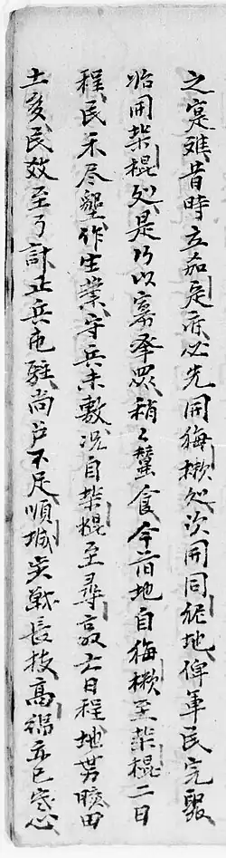 The original toponym behind Sài Gòn, was attested earliest as 柴棍, with two phonograms whose Sino-Vietnamese readings are sài and côn respectively, in Lê Quý Đôn's Phủ biên tạp lục (撫邊雜錄 "Miscellaneous Chronicles of the Pacified Frontier", c. 1776), wherein Lê relates that, in 1674, Cambodian prince Ang Nan was installed as uparaja in 柴棍 (Sài Gòn) by Vietnamese forces.[7]