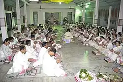 Namghar (Assamese: নামঘৰ lit. 'prayer house') is a place for congregational worship associated with the entire Assamese community and the Ekasarana sect of Hinduism, in particular, that is native to Assam.[1][2] Besides forming the primary structure used for worship, they also function as meeting houses for congregations, as well as theaters for dramatic performances (bhaona). The Namghar, also called the kirtanghar, is also the central structure in the Sattras (monasteries of the Ekasarana dharma) where the other buildings are positioned around it. Namghars are widespread in Assam, and very often more than one namghar exists in a single village, signifying many congregational communities.[1]