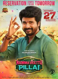 Namma Veettu Pillai (transl. The child of our house) is a 2019 Indian Tamil-language action comedy film[2][3] written and directed by Pandiraj and produced by Kalanithi Maran under the banner Sun Pictures.[4] The film stars Sivakarthikeyan and Aishwarya Rajesh, with a supporting cast including Anu Emmanuel, Samuthirakani, Soori, Bharathiraja, and Natty Subramaniam. The movie marks the third collaboration between Pandiraj and Sivakarthikeyan after Marina and Kedi Billa Killadi Ranga.[5] The music for the film is scored by D. Imman, while cinematography and editing are handled by Nirav Shah and Ruben. The film was released on 27 September 2019.[6] The film received a positive response from the audience and became a successful venture at the box office.