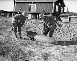 The Luftwaffe attacked and destroyed the British forward base at Steinkjer on 21 April, causing the loss of much of their supplies and destroying 242 houses, leaving over 1,800 Norwegian civilians homeless.[2] Although 80% of the town was destroyed in the attack, there were no deaths in the bombing.[3]