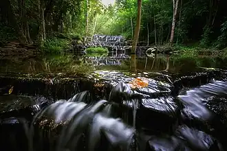 Animal species include pig-tailed macaque, northern red muntjac, lesser Oriental chevrotain, wild boar, Finlayson's squirrel and northern treeshrew.[3] Birds include brown shrike, greater coucal, green-billed malkoha, Javan pond-heron, long-tailed shrike, Oriental magpie-robin, plain prinia, plaintive cuckoo, puff-throated babbler, red junglefowl, sooty-headed bulbul, streak-eared bulbul, western koel and white-rumped shama.[3] Avian life is believed to have once included the white-eyed river martin, a native of northern Thailand now considered extinct. The park is also noted for its various butterfly species.[2][4]