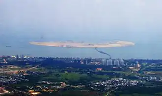 Nanhai Pearl Artificial Island (Chinese: 南海明珠人工岛) is an artificial island under construction off the coast of Holiday Beach in Haikou Bay, Haikou, Hainan, China.[1][2] The island is owned and being developed by HNA Group. As of April 2016, it consists of a roughly circular body of land with a bridge providing access to and from the shore. It is envisioned to ultimately become a visitor attraction with hotels and to eventually take the shape of a yin-yang symbol and be about 266 hectares.[3]