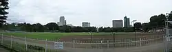 In July 1919, at Kyoto Municipal Seitoku Elementary School (currently called Kyoto Culture Association (京都文化協会, Kyōto bunka kyōkai)) in Shimogyo-ku in the city of Kyoto, a Japanese-style baseball tournament was held for the first time in the world. There is a bronze statue in Takaragaike Park Youth Sports Park (宝が池公園 少年スポーツ広場, Takaragaike kōen shōnen supōtsu hiroba) in Kyoto, marking it as the birthplace of nanshiki baseball.