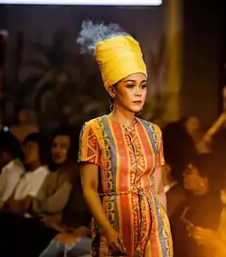 ![]() Nann Thuzar walking the runway at the 2018 Myanmar International Fashion Week. | |