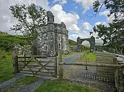 Hywel Sele Lodge is a two-storey semi-ruinous Tudor-Gothic style mini-castle folly that was the North gatehouse to the estates deer park. There is a Tudor arch attached to the lodge via a stone wall.[71][72]