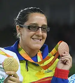 She made her Paralympic Games début at the 2008 Summer Paralympics in Beijing, in the women's up to 63 kg category. Defeating Zhou Qian of China by ippon within less than a minute in her first match, she then defeated Sweden's Elvira Kivi by waza-ari-awasete-ippon in the semifinal. In the final, it took her just three seconds to defeat Spain's completely blind Marta Arce by ippon and win Venezuela's first ever Paralympic gold medal.[2][3][4]