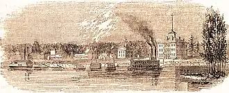 The leaders of Napoleon were ambitious, not only did they create a town with a large wharf, they lobbied to be the location of one of the Federal Marine Hospitals and aspired to build a railroad linking Napoleon to the Pacific Ocean.[2] Despite such aspiration the town quick established a sour reputation for filth, bugs and crime. U.S. Supreme Court Justice Peter Vivian Daniel wrote to his daughter about his visit to Napoleon in 1851 calling it a "miserable place [that] consists of a few slightly build wood houses, hastily erected no doubt under some scheme of speculations, and which are tumbling down without ever having been finished…"