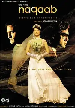 Naqaab (transl. Mask) is a 2007 Indian Hindi-language romantic thriller film[3] directed by Abbas–Mustan. The film stars Bobby Deol, Akshaye Khanna and debutant Urvashi Sharma in her film debut. Inspired by the film Dot the I, Naqaab was released on 13 July 2007 and bombed at the box office.[4]
