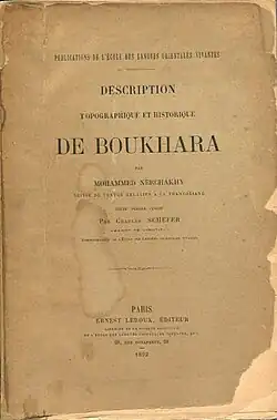 - ^ a b (1954). "Introduction". The History of Bukhara: Translated from a Persian Abridgment of the Arabic Original by Narshakhī. Translated by Frye, Richard Nelson. Cambridge, Massachusetts: Mediaeval Academy of America. p. xii. Retrieved 10 January 2019.