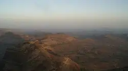The larger eastern portion of the district, which lies on the Deccan Plateau, is open, fertile, and well cultivated. The Satmala-Chandwad Range, which runs east and west, forms the chief divide of the plateau region. Peninsular India's largest river Godavari originates in the district in the Trimbakeshwar Range and continues eastwards through the district.[4] The Satmala-Chandwad Range forms a watershed, such that, the rivers emerging to its south drain into the Godavari. These include the Kadva and Darna both of which are tributaries of the Godavari. To the north of the Satmala-Chandwad Range, the Girna River and its tributary, the Mosam, flow eastward through fertile valleys into the Tapti River.