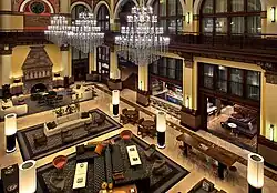 The last passenger train left the station in 1978,[2] and in 1975 the building was designated a National Historic Landmark.[4] Union Station reopened as the "Union Station Hotel" in 1986 after being abandoned for several years.[1] The hotel became a Marriott Autograph Collection Hotel in 2012[5] and completed a full renovation of all guest rooms and public spaces in 2016.[1] It became a member of Historic Hotels of America in 2015[1] and is considered a luxurious and charming choice for accommodations in Nashville today.[6]