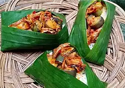| Main ingredients | Rice in small portion with various side dishes wrapped inside banana leaf |
